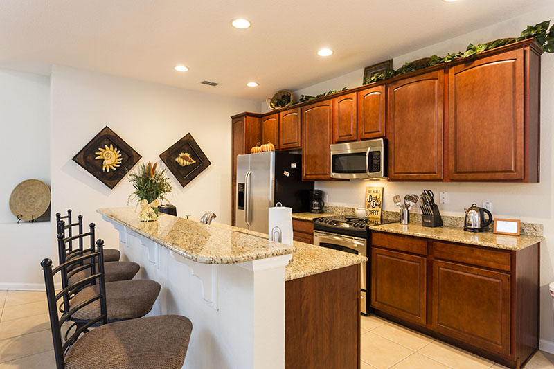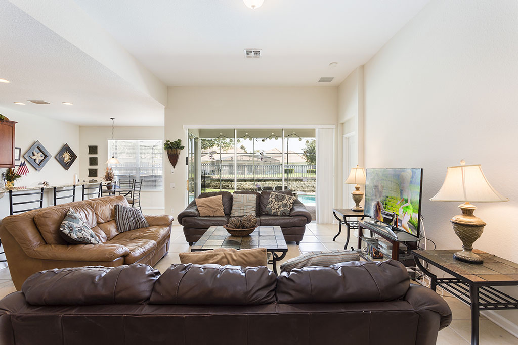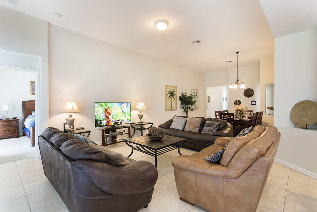 The lounge has a large 55″ flat screen Smart TV with Netflix, DVD player and free wireless internet access. There are three leather sofa’s in the lounge… plenty of room for everyone to relax. Dining table which seats eight, kitchen nook seating for 4 and additional seating along kitchen counter.