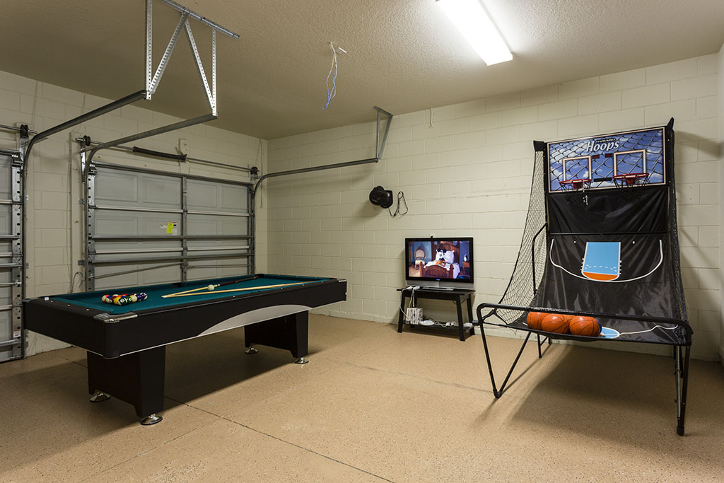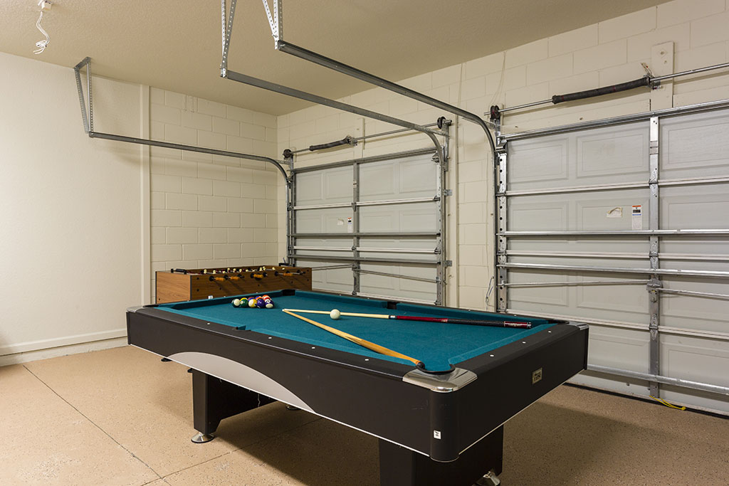 Our games room has a pool table, fooseball table, a full size table tennis table and TV with Wii games
